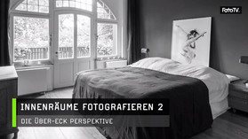In dem zweiten Teil seiner Tutorial-Serie zur Innenarchitekturfotografie von FotoTV zeigt Christian Wadsack, wie man Räume vom Eingang her gekonnt in Szene setzen kann. Dazu beginnt er zunächst mit einer Zentralperspektive und arbeitet dann die sogenannte Über-Eck-Perspektive heraus. Als Beispiel dient ein ansprechendes Schlafzimmer mit einer großer Fensterfront. Der Fotograf erklärt, bei welchem Bildausschnitt und welcher Perspektive, welche Fluchtpunkte entstehen und wie der abgebildete Raum dabei auf den Zuschauer wirkt.