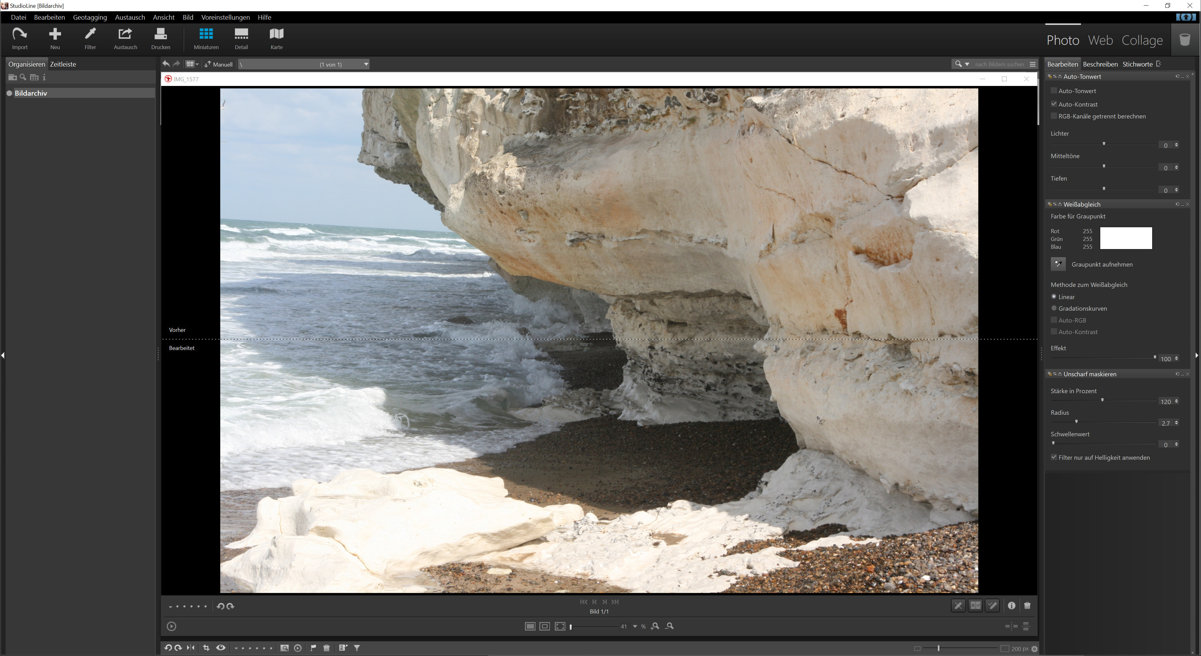 StudioLine Photo Classic ist eine professionelle Bildbearbeitung und Bilddatenbank mit hierarchischen Kategorien und Bewertungssystem zur Verwaltung und Bearbeitung umfangreicher Bildbestände. Sie erlaubt das Importieren aller gebräuchlichen Formate einschließlich RAW-Fotos, unterstützt Geotagging und kann IPTC- sowie EXIF-Metadaten lesen und bearbeiten.