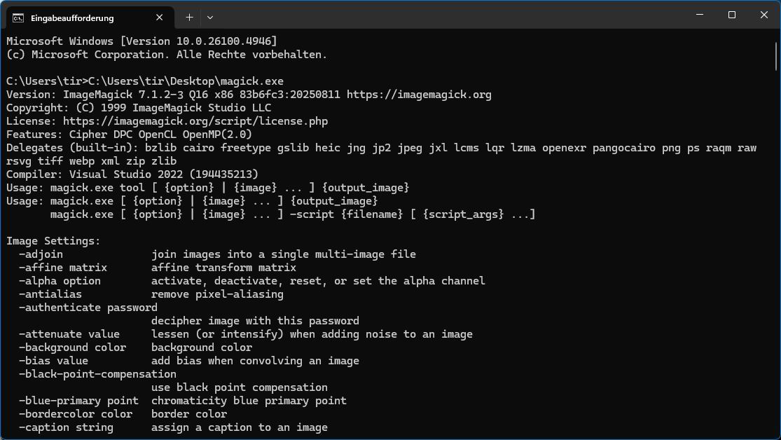 Kommandozeilen-Tool, mit dem man Bilder bearbeiten, Screenshots und animierte GIFs erstellen und Bildformate konvertieren kann; hier gibt es zusätzlich den Quellcode.