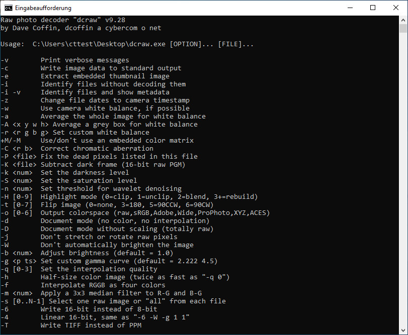 Universeller Raw-Konverter als Kommandozeilen-Tool für Digitalkamera-Rohdaten diverser Hersteller und Modelle; hier gibt es zusätzlich den Quellcode.